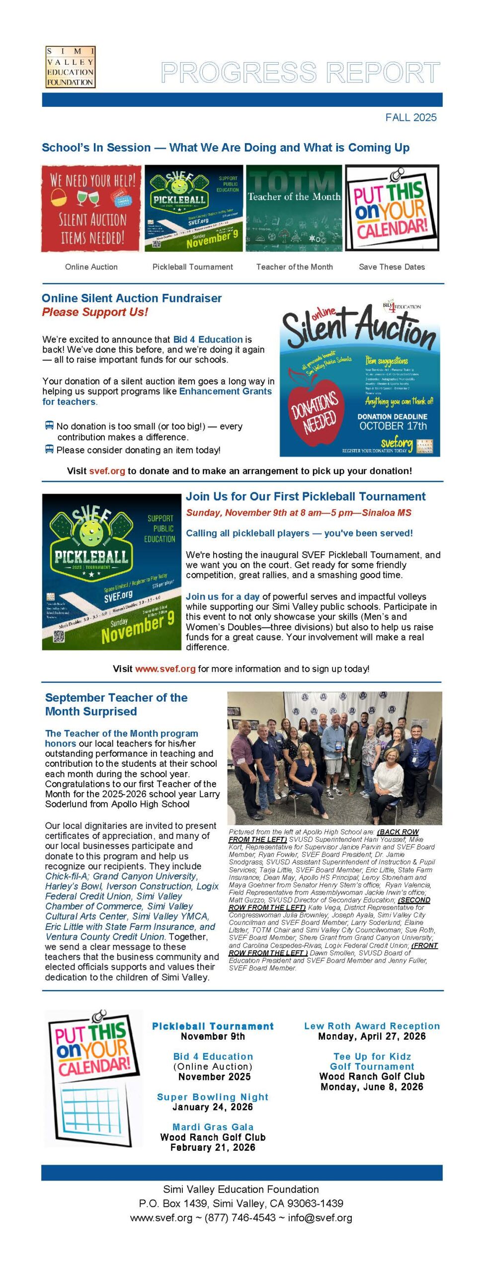 Let’s work together to make Simi Valley a great place to live, work and go to school! By becoming a member you will continue the tradition of supporting the Simi Valley Unified School District students and teachers. We look forward to having you onboard to help volunteer within our community and support a worthy cause that goes 100% back into the Simi Valley education system.